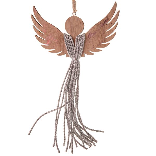 Dřevěný závěsný anděl s textilní sukní 22 cm, 12/144