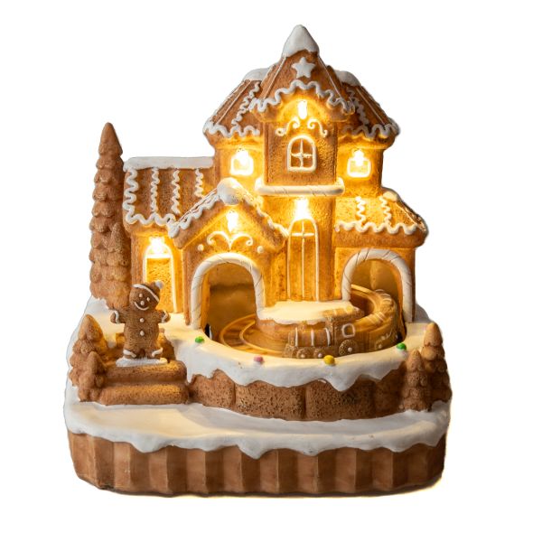Polyresinový svítící domek s jezdící mašinkou, 1/8