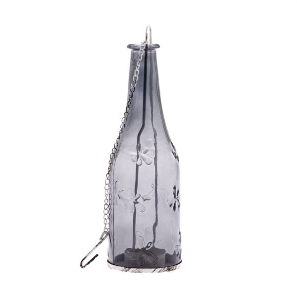Závěsný skleněný svícen - šedé barvy - tvar láhve 0/24