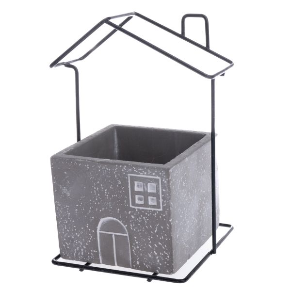 Cement flowerpot with metal house decor, 0/6