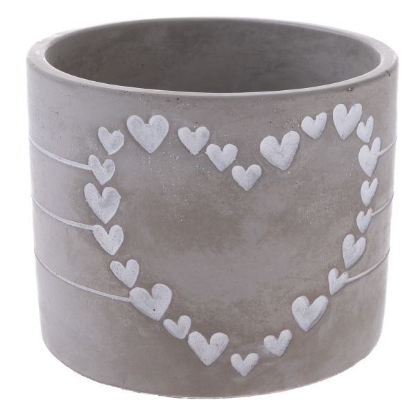 Cement flowerpot with heart, grey, 6/24