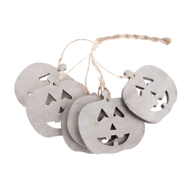 Wooden hanging pumpkins - grey - 6pcs set, 0/34