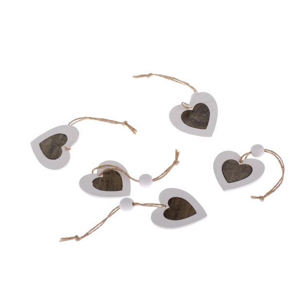 Wooden hanging decoration - heart - 5pcs set, 0/200