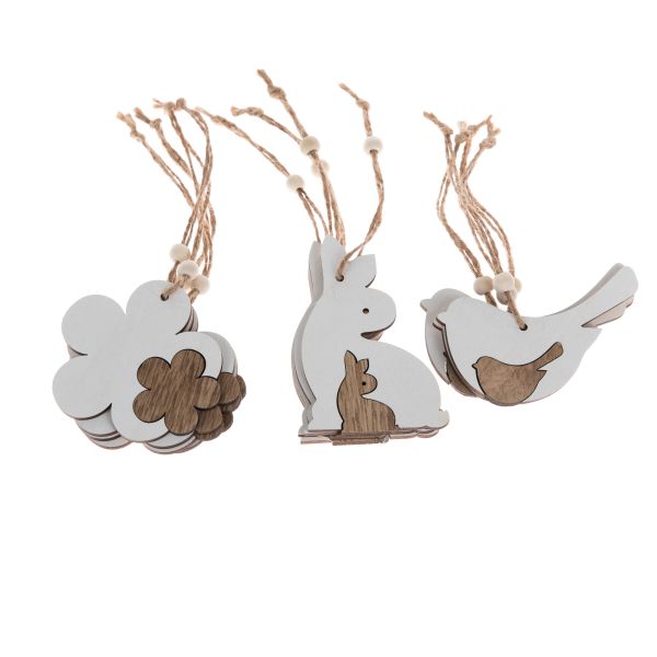 Wooden hanging spring decoration - 12pcs set, 24/144