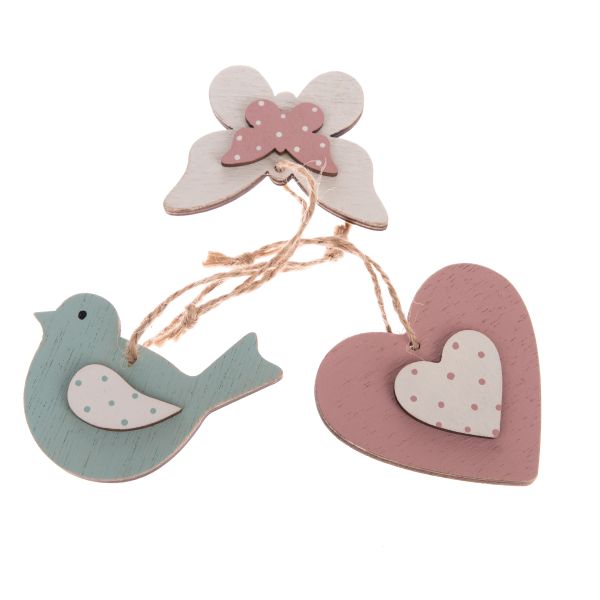 Hanging wooden spring decorations - 3pcs set, 24/288
