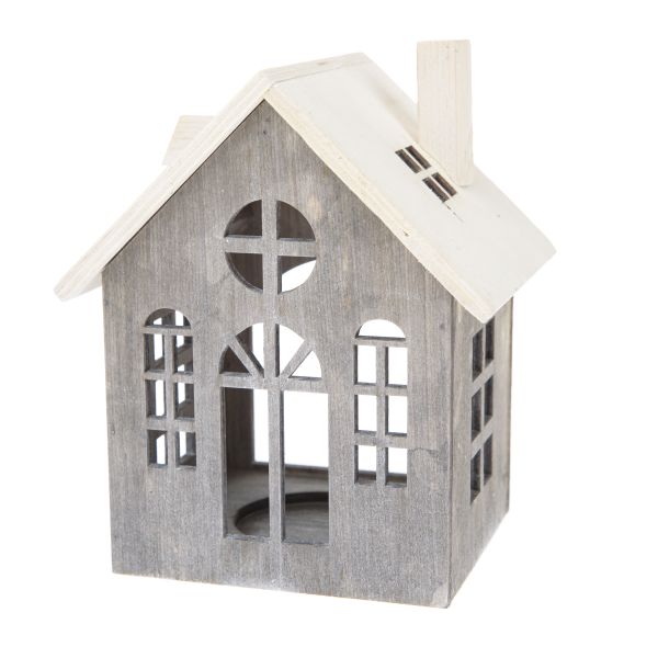 Wooden house with LED candle, 0/48