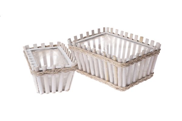 Wooden flowerpot with PVC - rectangular - set of 2pcs, 0/12