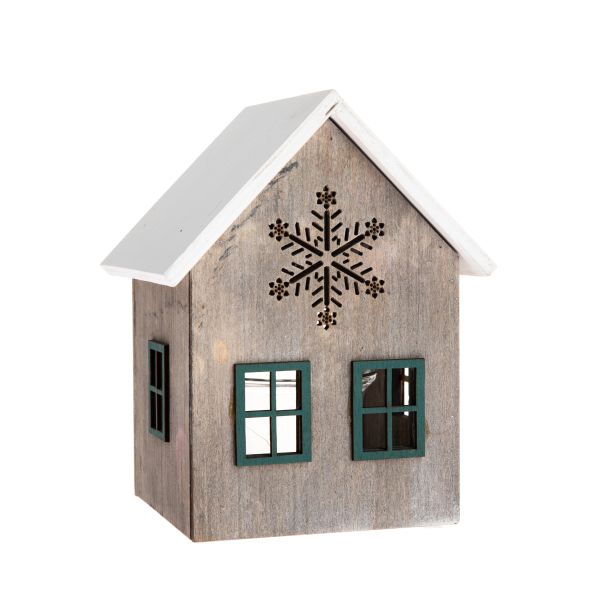 Wooden candeloholder with LED - house 15 cm, 0/48