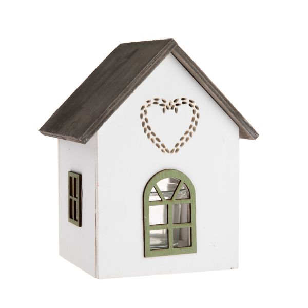 Wooden candeloholder with LED - house 15 cm, 0/48