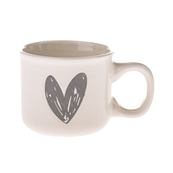 Ceramic mug with a heart, white with grey, 90 ml, 12/96