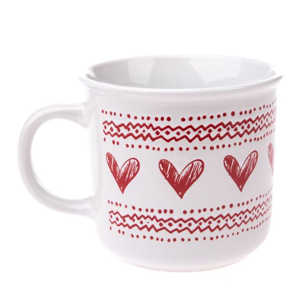 Ceramic mug with hearts, white, 450 ml, 6/36