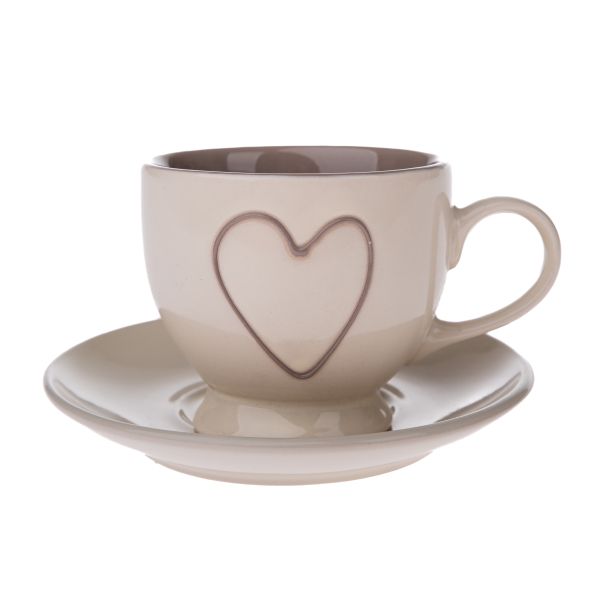 Ceramic cup with saucer, beige, 200ml, 6/36