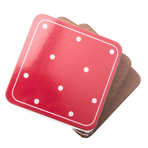 Cork coasters - red with dots - 6pcs set, 0/60