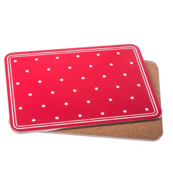 Cork placemats, red with white dots - 2 pcs set, 0/18