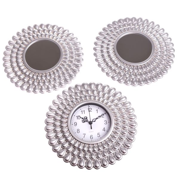 Plastic wall clock & mirror set - 3pcs set, 1/20
