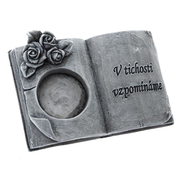 "Polyresin candleholder - book "V tichosti vzpomínáme", 6/96"
