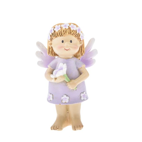 Polyresin fairy with white flower, 12/144