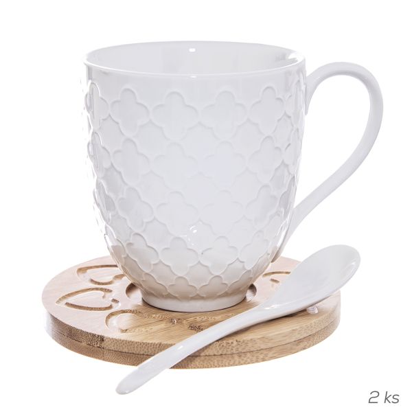 Porcelain mug with saucer and spoon - 2pcs set, 0/12