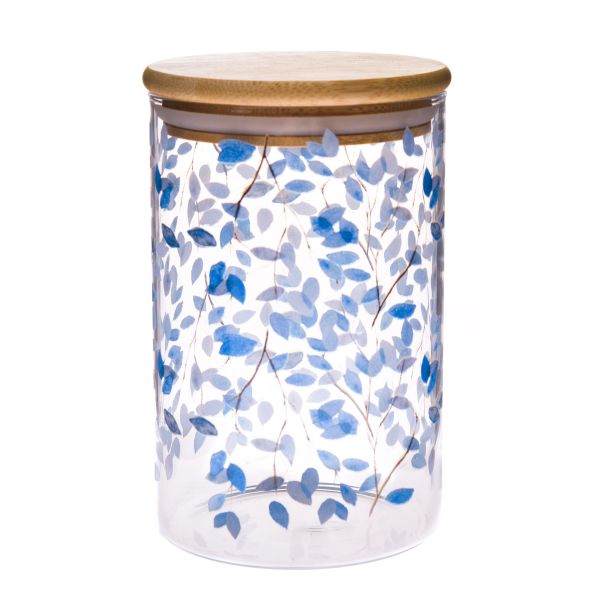 Glass jar with bamboo lid - blue flowers, 840ml, 2/24