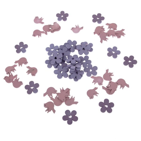 Fa dekoráció - madarak - 2 méret, rózsaszín, lila, 0/48