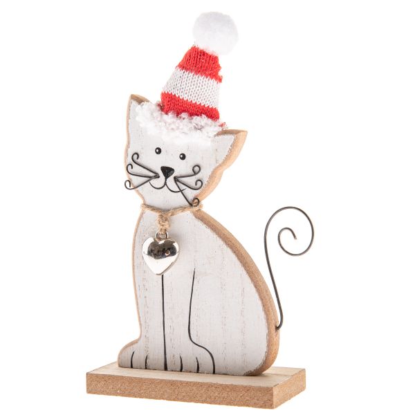 Fa macska haranggal és kötött sapkával 16 cm, 24/192