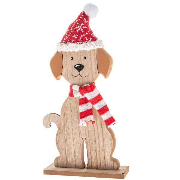 Fa kutya kötött sállal és sapkával 32 cm, 12/72
