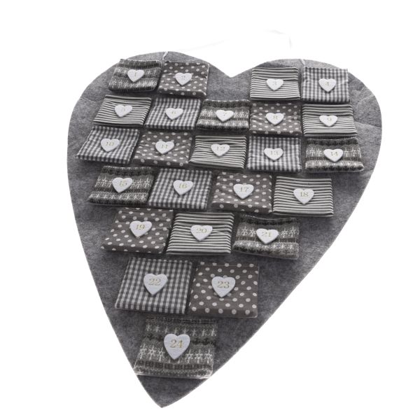 Textil függő adventi naptár - szív, 0/24