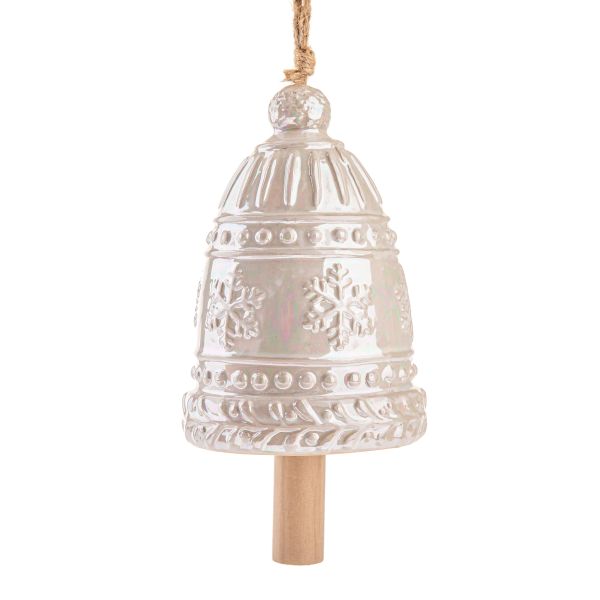 Nagy kerámia harang hópelyhekkel 16 cm - krém gyöngyház, 4/16