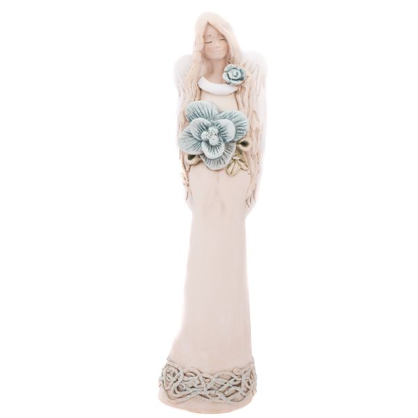Anioł z niebieskim kwiatem (gips) – 40 cm