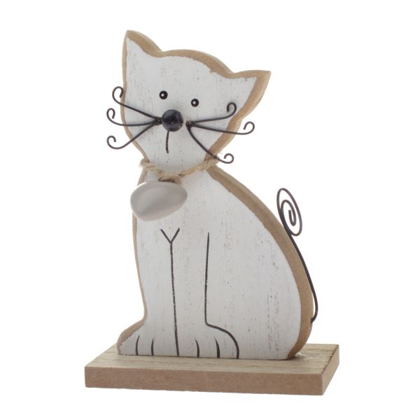 Drewniany kot 10 cm - biały, 12/144