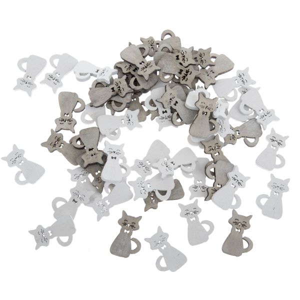 Drewniany kot - biała, szara - zestaw 60szt, 0/48