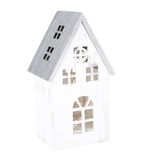 Drewniany domek z oświetleniem LED (10 diod LED), 0/24
