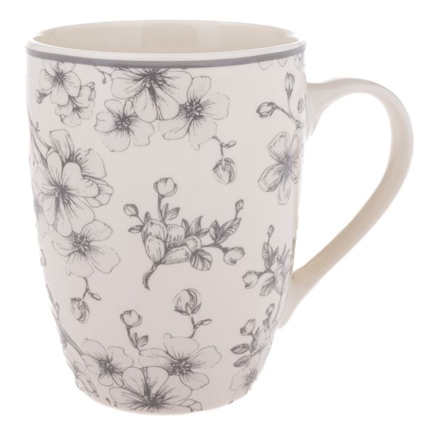 Kubek ceramiczny szare kwiaty, 300ml, 6/36