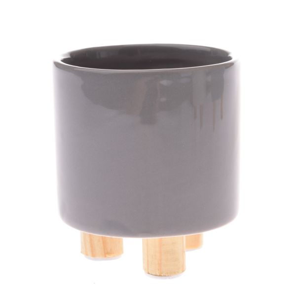 Doniczka ceramiczna z drewnianymi nogami, szara, 0/48
