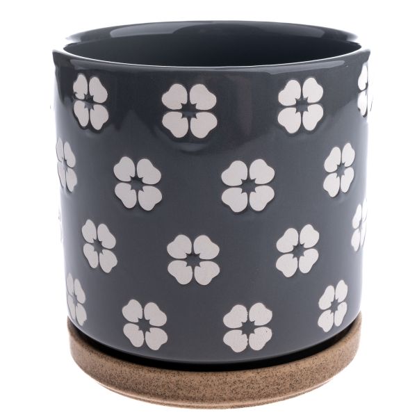 Doniczka ceramiczna ze spodkiem, szary, 0/12
