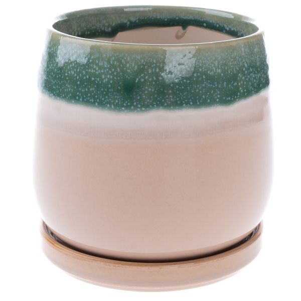 Doniczka ceramiczna ze spodkiem, zielony, 0/12