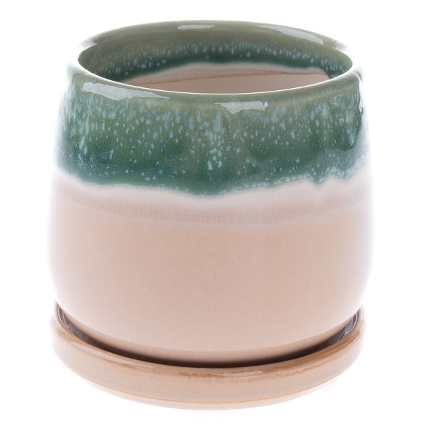 Doniczka ceramiczna ze spodkiem, zielony, 0/24