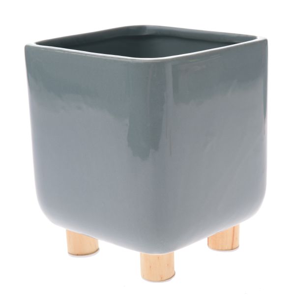Doniczka ceramiczna z drewnianymi nogami, jasnozielona, 0/8