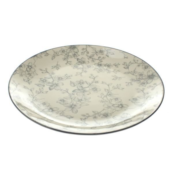 Talerz ceramiczny Ø 26 cm - szare kwiaty, 6/12