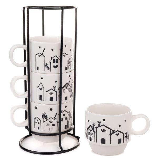 Kubek porcelanowy w metalowym stojaku - zestaw 4 szt, 160ml, 1/16
