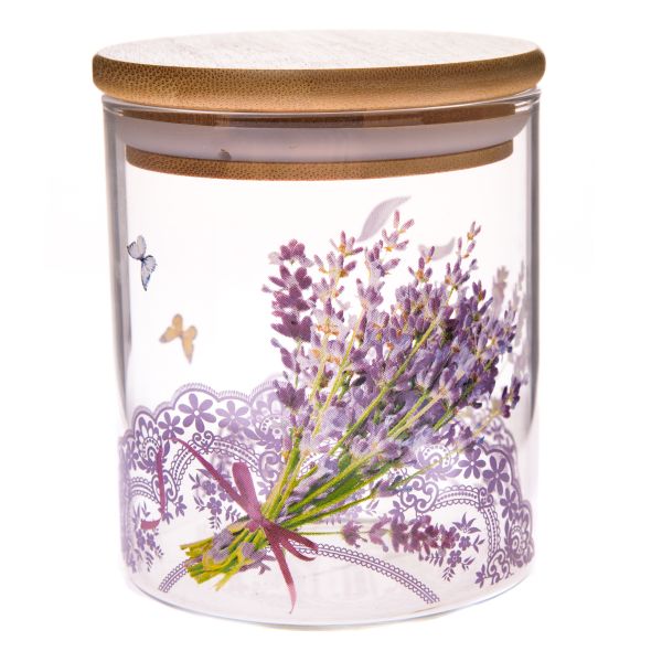 Szklany słoik z bambusową pokrywką - lawendowy, 440ml, 4/48