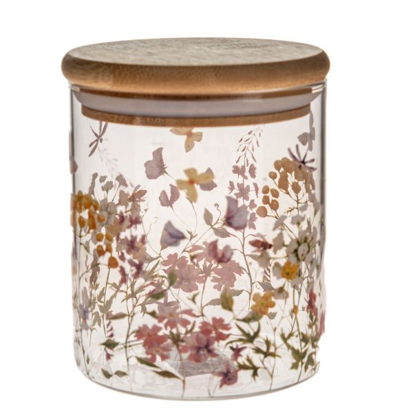 Szklany pojemnik z bambusową pokrywką – kwiaty, 410ml, 0/48