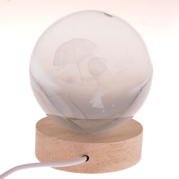 Szklana kula LED na drewnianej podstawie, USB – Mały Książę, 1/36