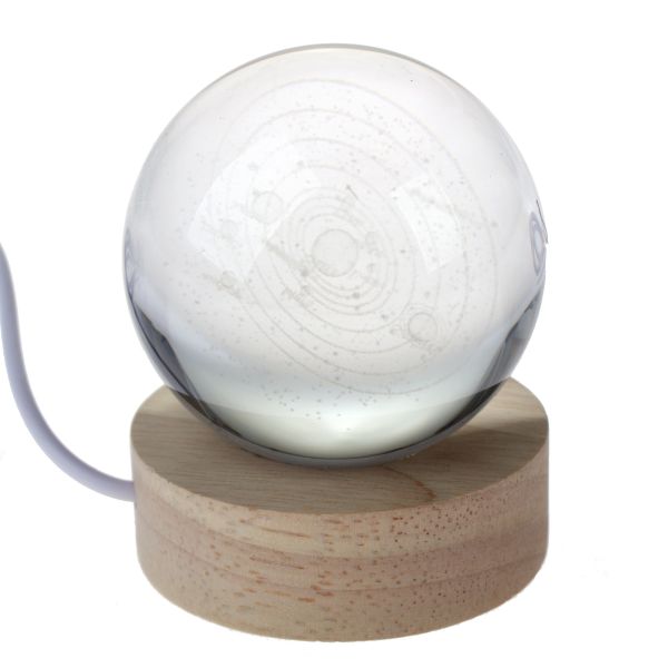 Świecąca szklana kula na drewnianej podstawce, USB, 0/60