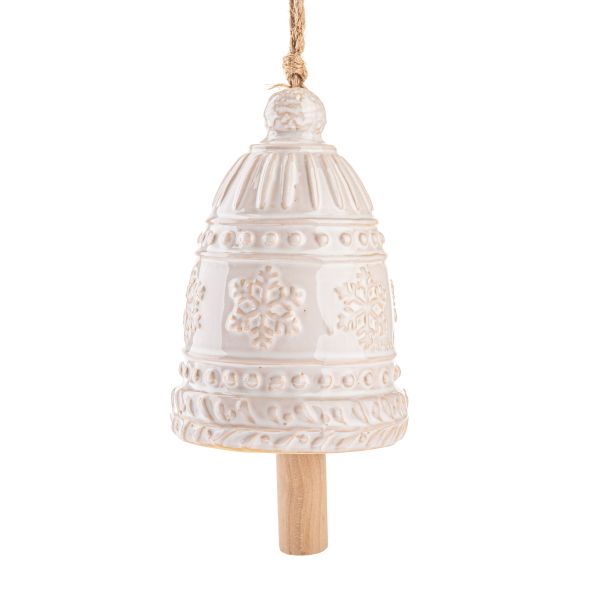 Dzwonek ceramiczny z płatkami śniegu 16 cm - kremowy, 4/16