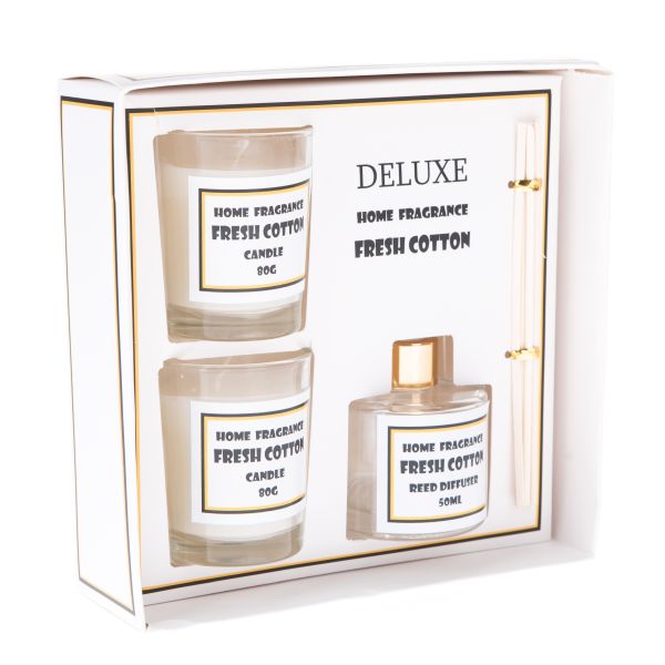 Zapachowy dyfuzor (50ml) + 2x świeca (80g) - świeża bawełna, 1/12