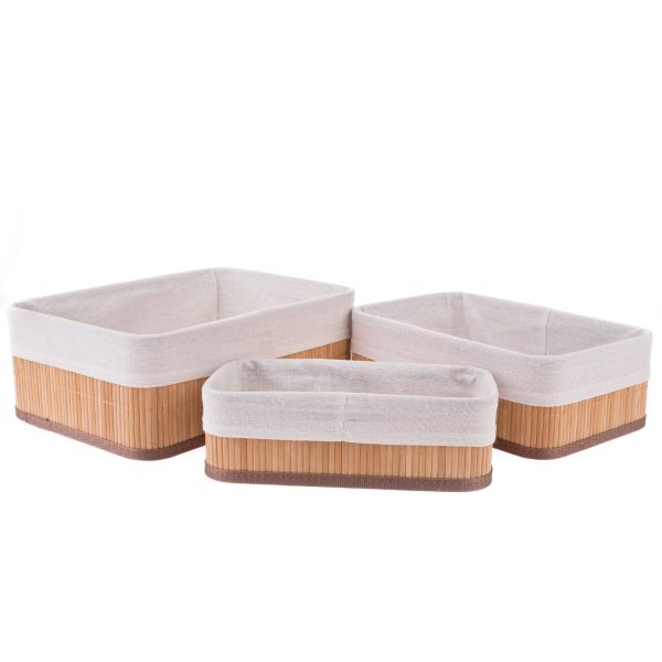 Bambusový úložný box s text. výstelkou - sada 3 ks, 1/12