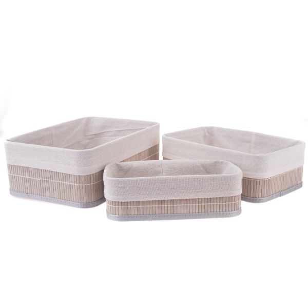 Bambusový úložný box s text. výstelkou - sada 3 ks, 1/12
