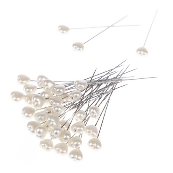 Dekorační špendlíky s bílými srdíčky v krabičce - 36ks, 20/200