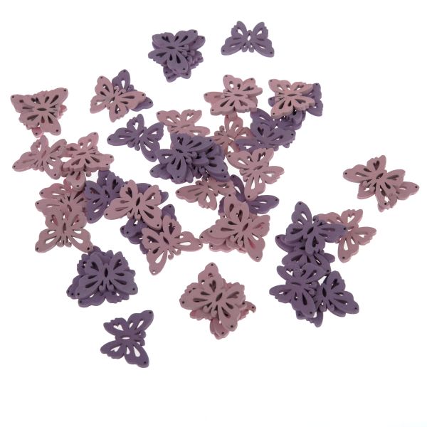 Dřevěná dekorace -motýli - 2 rozměry, růžová, fialová - sada 60ks, 0/48